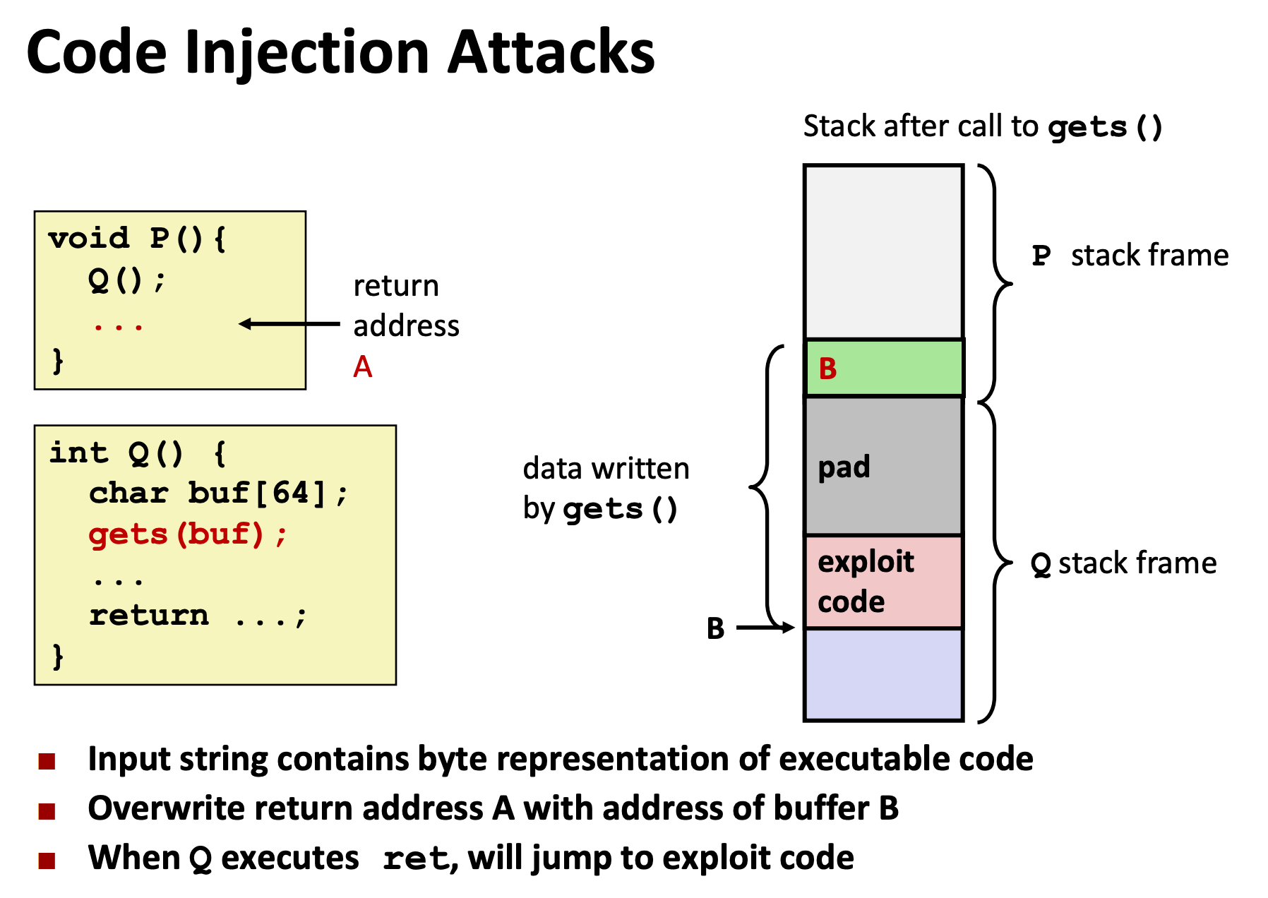 对于前三个阶段,你需要把输入 string 存在 stack 中,如果 string 这包含一段可执行文件的字节编码,那么程序会将这个字符串看做可执行的代码,这样就实现了对代码的攻击。